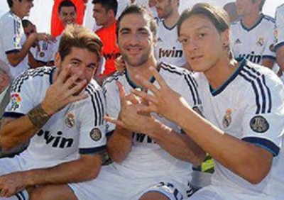 نشرت صفحة «جنود الرئيس محمد مرسى» على الفيس بوك صورة للثلاثى مسعود اوزيل وسيرجيو راموس وجونزالو هيجوين لاعبى فريق ريال مدريد وكتب اسفلها أن اللاعبين الثلاثة يرفعون إشارة رابعة العدوية بالأصابع الأربعة. وهو ما لاقى العديد من التعليقات الساخرة على ادمن الصفحة.
