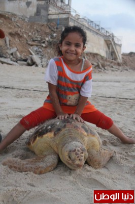 بالصور.. اصطياد سلحفاة عملاقة على شاطيء بحر غزة