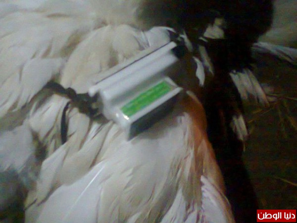 الموجودة بظهر الطائر والتى يشتبه انها اجهزة اتصالات مخابراتية متطورة تستخدم لاغراض تجسسية وتقوم بمهمة خاصة داخل مصر خلال تلك الفترة ودعا كل ابناء الشعب المصرى بمختلف المحافظات بتقديم اية معلومات الى الاجهزة الامنية تتعلق بالامن القومى المصرى لمنع الاختراق الخارجى للبلاد خلال تلك الفترة العصيبة .