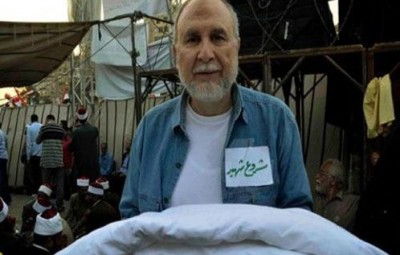 كان العربى من بين المعتصمين فى رابعة العدوية قبل فض الاعتصام وظهر على المنصة بجانب العديد من قيادات الإخوان المسلمين وهو يحمل كفنه.