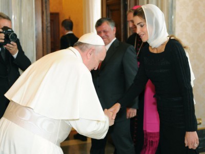 تداول نشطاء مواقع التواصل الاجتماعي صورة للملكة رانيا مع بابا الفاتيكان في الزيارة التي قام بها الملك والملكة الأربعاء الماضي