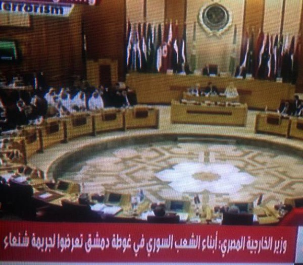 حيث انطلق اليوم اجتماع وزراء الخارجية العرب اليوم في جلسته الافتتاحية لمناقشة توجيه ضربة للنظام السوري بعد المجزرة التي قام بها في الغوطة بتاريخ 21/ اغسطس / 2013 بها بالكيماوي ( غاز السارين ) علىشعبه