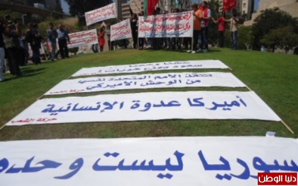 وشدد المعتصمون على التضامن مع سورية في وجه التهديدات الاميركية