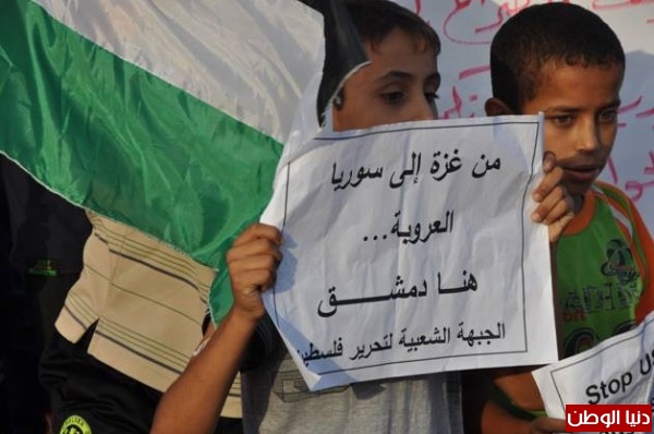 وتخلل الوقفة، هتافات لبعض الأطفال الذين رفعوا يافطات باللغة العربية والانجليزية، أكدت على وقوف الشعب الفلسطيني مع سوريا، وأنه لا حياد إن وقع العدوان على سوريا، وسط هتافات لسوريا ولشعبها .