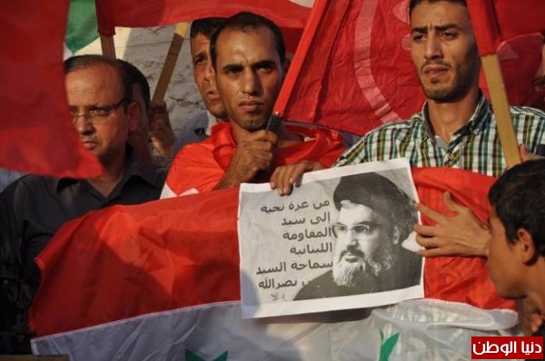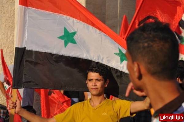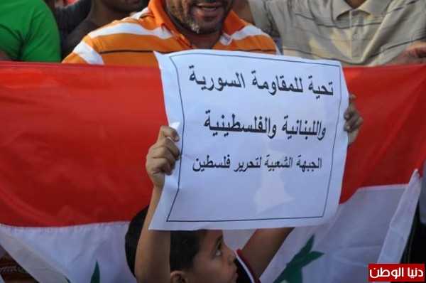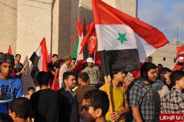 ورفع المشاركون خلالها الرايات وأعلام سوريا وفلسطين، والشعارات المنددة بالتهديدات الأمريكية الغربية لسوريا، بالإضافة إلى صور الزعيم الراحل جمال عبد الناصر، والأمين العام لحزب الله اللبناني حسن نصر الله. وسط هتافات تؤكد على مكانة وأهمية سوريا في قلب الشعب الفلسطيني.