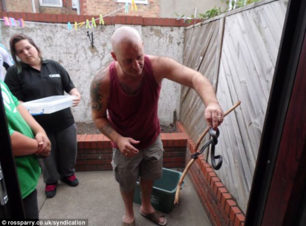 وعلى الفور قام الابن سايمون بقيادة الأفعى إلى صندوق، وأغلقه عليها، ثم اتصل بصاحب محل زواحف قريب من المنزل، الذي حضر وأخذها.
