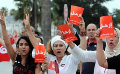 تظاهر الاف التونسيين مساء السبت في باردو، بالقرب من تونس العاصمة، للمطالبة باسقاط الحكومة التي يتزعمها حزب النهضة الاسلامي وذلك في ذكرى مرور اربعين يوما على اغتيال النائب المعارض محمد البراهمي.