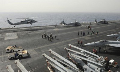 ونقلت صحيفة "لوس أنجلوس تايمز" في مقال نشر على موقعها اليوم الاحد ، عن ضابطين أمريكيين، طلبا عدم الكشف عن هويتهما، أن البنتاغون ينظر في استخدام القاذفات التابعة لقواتها الجوية إلى جانب سفنها العسكرية الخمس المنتشرة حاليا في شرق المتوسط.