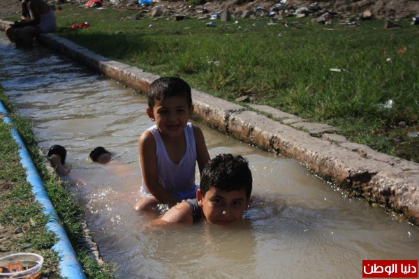 عدسة دنيا الوطن ترصد بالصور اطفال يسبحون بنبعة عين السلطان باريحا