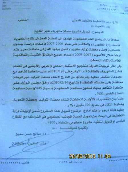 "بالوثائق"مستثمرون يشكون أداء الحكومة ووزير الكهرباء يعرقل مشروع محطة معبر