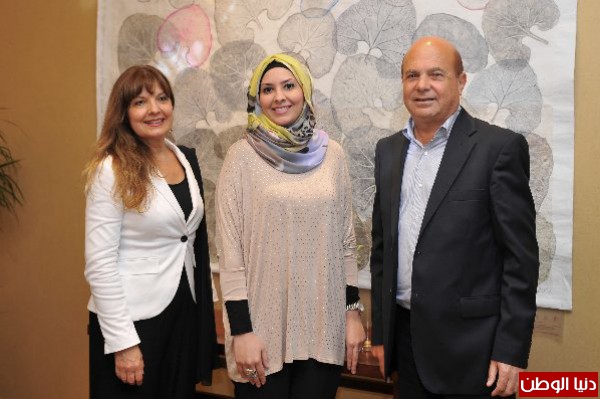 وابدي اعجابه بلوحاتها التي تتسم بمزيج الألوان والأنسجة .