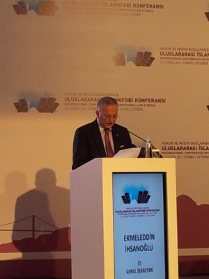 وأعرب إحسان أوغلى في مستهل كلمته عن شكره لحكومة الجمهورية التركية لاستضافتها لهذا المؤتمر الدولي الأول الذي نظمته بالتعاون مع منظمة التعاون الإسلامي. كما أعرب عن شكره للإدارة العامة للصحافة والإعلام التي جعلت هذه الفعالية أمرا واقعا. وأوضح إحسان أوغلى أن ظاهرة الإسلاموفوبيا تشكل قضية مركزية للعالم الإسلامي، بل وللمجتمع الدولي برمته، وهي واحدة من القضايا الشائكة الكبرى التي تواجه المجتمع الدولي وتشكل تهديدا وخطرا على السلم والأمن في العالم، وتتعارض تعارضا صارخا مع القيم العالمية ومع التزامات المجتمع الدولي بتكريس ثقافة السلم والوئام بين مختلف الثقافات والحضارات والديانات.