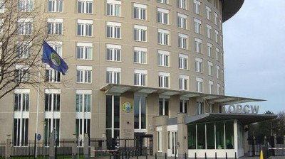 وتطبيق هذه المعاهدة، خصوصا لناحية تدمير مخزونات الاسلحة الكيماوية، يحصل بإشراف منظمة حظر الاسلحة الكيماوية ومقرها في لاهاي بهولندا.