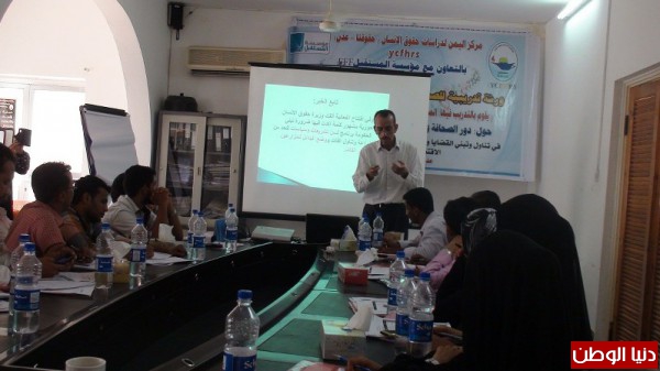عقدت صباح يوم امس الأحد الموافق 15- سبتمبر-2013م أعمال الورشة التدريبية التي يقوم في التدريب فيه المدرب الأردني الأستاذ - نور الدين الخمايسة نائب رئيس تحرير جريدة الغد اليومية الاردنية ، والتي ينظمها مركز اليمن لدراسات