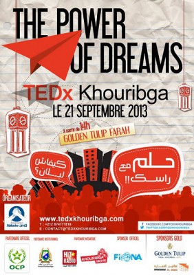 تحتضن مدينة خريبكة يوم السبت 21 شتنبر 2013 بفندق كولدن تيليب ، الطبعة الأولى من التظاهرة العالمية '' تيد إكس خريبكة '' TEDx Khouribga ، حيث سيلتقي أكثر من مائة مدعو ومدعوة من مختلف مناطق المغرب لتبادل الآراء ومناقشة مجموعة من الضيوف من مختلف المجالات سياسية فنية إعلامية ورياضية و اقتصادية تحت شعار " قوة الأحلام ''
