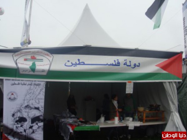 وتحت يافطة ضخمة يتوسطها شعار منظمة التحرير الفلسطينية وعبارة "دولة فلسطين" باللغتين العربية والفرنسية ضم الجناح الفلسطيني كلاً من الاتحاد العام لطلبة فلسطين في فرنسا وحركة التحرير الوطني الفلسطيني فتح – إقليم فرنسا، وممثلين عن سفارة فلسطين في باريس. الجناح شهد اقبالاً مميزاً من الزوار للإطلاع على ما يعرضه من المنتجات اليدوية التراثية الفلسطينية والملصقات والمعروضات الوطنية والملصقات والمنشورات التي تشرح ابعاد القضية الفلسطينية، وكذلك لتذوق الاكلات الشعبية الفلسطينية التي قامت وحدة باريس في الاتحاد العام لطلبة فلسطين بتحضيرها.