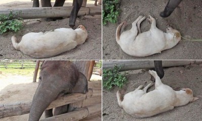 وتنقل الصحيفة عن الأسرة التي التقطت الشريط: أن الفيل الصغير حين يأس من إيقاظ صديقه، رقد هو الآخر على الأرض وقرر النوم.