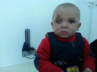 أحمد مصاب باكثر من خمسين شظية في رأسه وبيده اليسرى وساقه أيضا.