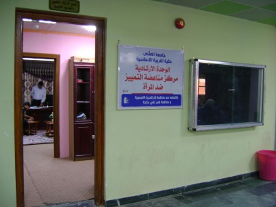 في سابقة هي الاولى من نوعها , قامت منظمة الرافدين النسوية وبالتنسيق مع رئاسة جامعة المثنى والحكومة المحلية في المحافظة , وبالتعاون مع منظمة ناس في حاجة التشيكية ( PIN ) , وبتمويل من صندوق دعم الديمقراطية ( NED ) افتتح في الوحدة الارشادية في كلية التربية الاساسية في جامعة المثنى اول مركز من نوعه لمناهظة التمييز ضد المرأة في العمل .