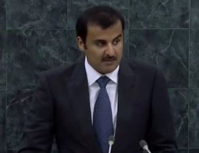 وقال بن حمد في في كلمة أمام الجمعية العامة للأمم المتحدة اليوم الثلاثاء ان "استمرار الاحتلال الاسرائيلي للأراضي الفلسطينية والعربية وتغيير الواقع السكاني والعمراني عبر توسيع الاستيطان وتهويد مدينة القدس والحصار الخانق والجائر لقطاع غزة وتكثيف الاستيطان في هضبة الجولان السورية المحتلة وتغيير طبيعتها السكانية.
