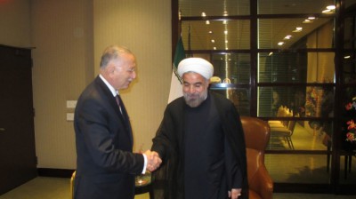 عقد الأمين العام لمنظمة التعاون الإسلامي، البروفيسور أكمل الدين إحسان أوغلى، اجتماعا ثنائيا مع فخامة الرئيس الإيراني حسن روحاني على هامش الدورة الثامنة والستين للجمعية العامة للأمم المتحدة في نيويورك. وشدد الجانبان على ضرورة تحقيق الوحدة والوئام بين المسلمين محو التصورات الخاطئة التي تقرن الإسلام بالإرهاب. كما ناقش الطرفان المجالات التي تحتاج إلى مزيد من التعاون بين إيران والمنظمة.
