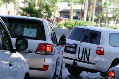 خبراء التفتيش على الاسلحة الكيماوية يغادرون فندقهم في دمشق الى جهة مجهولة
