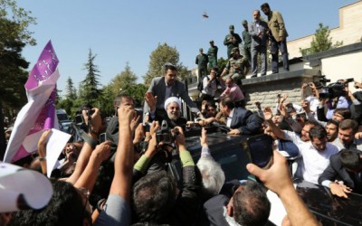 واستقبل روحاني صباح السبت في مطار طهران من قبل مئات من انصاره رحبوا به وايضا من مجموعة من نحو ستين من معارضيه هتفوا ‘الموت لاميركا’ و’الموت لاسرائيل’ والقى احدهم حذاء باتجاه سيارة الرئيس بدون ان يصيبها.