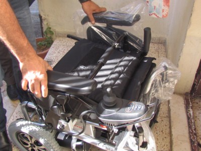 ضمن سلسلة الزيارات الميدانية التفقدية للحالات المعدمة والمرضى منهم والمعاقين قدمت جمعية التضامن الخيرية بالتعاون مع فاعلة خير كريمة كرسياً كهربائيا لطفلة تعاني من شلل نصفي يلزمها الرقود في المنزل في مكان واحد طوال النهار ولكن إصرارها على التعلم والذهاب للمدرسة هو ما دفع الجمعية للسعي لتامين الكرسي الكهربائي بأسرع وقت كي تتمكن من الذهاب للمدرسة والاعتماد على نفسها .