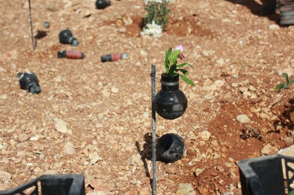 بالصور.. من الموت يزرعون الحياة.. أزهار يزرعها الفلسطينيون في قنابل "الموت"