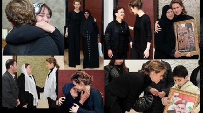نشر القائمون في صفحة "رئاسة الجمهورية العربية السورية" في موقع "فيسبوك" صورا لزوجة الرئيس الأسد، وهي تقوم بواجب العزاء لعائلات فقدت أحد أفراده
