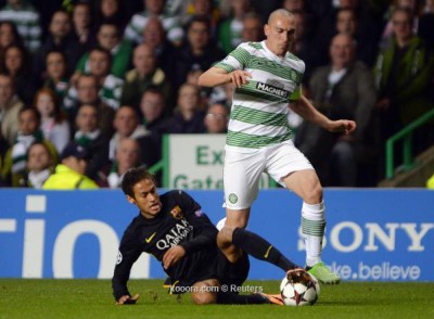 دافع البرازيلي نيمار نجم برشلونة عن قرار طرد سكوت براون قائد سلتيك الأسكتلندي ، خلال مباراة الفريقين مساء الثلاثاء في بطولة دوري أبطال أوروبا لكرة القدم.