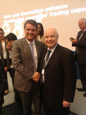 سلّم سعادة الدكتور طلال أبوغزاله، عضو فريق منظمة التجارة العالمية لرسم مستقبل التجارة ورئيس مجلس إدارة مجموعة طلال أبوغزاله عدة اقتراحات رئيسية إلى المدير العام لمنظمة التجارة العالمية الجديد وذلك أثناء الجلسة العامة الإفتتاحية للمنتدى العام لمنظمة التجارة العالمية الذي عقد في جنيف 2013.