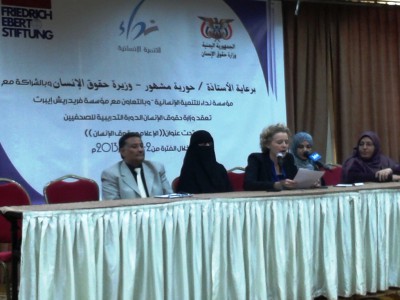 فيما اكدت السيدة ارييلا جروس الممثل المقيم في اليمن لمؤسسة فريدريش ايبرت ان واقع اليمن لا يزال بعيدا جدا عن تحقيق المعايير الاساسية لحقوق الانسان , مشيرة الى ان على الصحفيين ان يعوا بقضايا حقوق الانسان , ويستوعبوا الديمقراطية بشكل افضل عندما يكون الصحفيين قادرين على تزويد المجتمع المدني بالمعلومات التي يحتاجون اليها من أجل صياغة مواقف مستنيرة بشأن كل القضايا .
