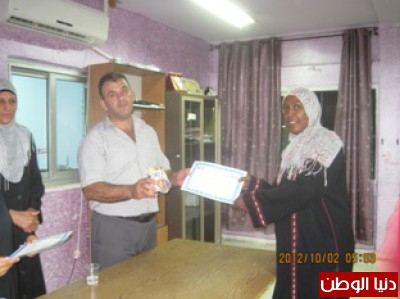 وقام نائب رئيس المجلس العمالي في محافظة أريحا السيد مصطفى بلهان وعضوه اللهيئة الادارية حنان عماش السيدة انتصار الأخرس رئيسة جمعية النشاط النسوي بتوزيع شهادات شكر وتقدير للمشاركات على إلتزامهن ومشاركتهن الفاعلة والايجابية في اللقاء