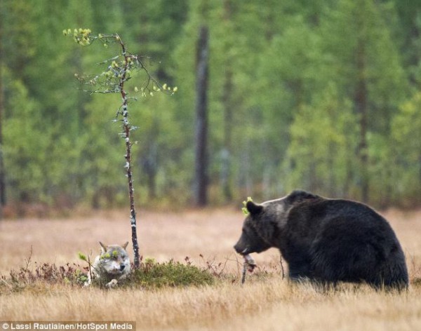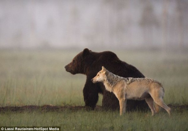 وعلق المصور قائلا : " لا أحد يعلم تماما كيف ولماذا نشأت هذه الصداقة غير المألوفة بين الدب والذئب .. أعتقد أن كلاهما كان وحيدا ولا يعرفان كيفية البقاء على قيد الحياة وحدهما"