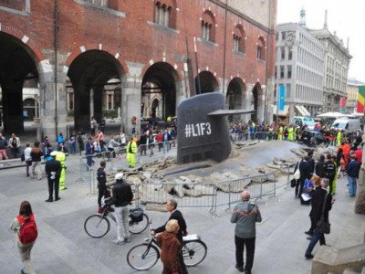 اخترقت غواصة أحد شوارع مدينة ميلانو الإيطالية في مشهد استفاق عليه سكان هذه المدينة.
