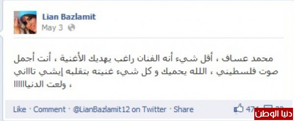 قادت ليان حملة مكثفة عبر صفحتها لدعم ابن بلدها محمد عساف خلال مشاركته في آراب آيدل عبر صفحات التواصل الاجتماعي , وحين أدى أغنية علي الكوفية كتبت معلقة: " عساف .. انت رمز من رموز فلسطين ، انت ظاهرة عربية فلسيطينية ، حركت مشاعري ب "علي الكوفية" بشكل غريب الله يحميك يا غالي" بل وظهرت عى فضائية فلسطين في حلقة خاصة لتدعمه.