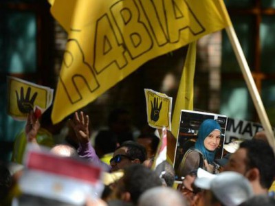 وحمل المتظاهرون، شعارات «رابعة العدوية»، ولافتات تطالب برحيل الفريق أول عبدالفتاح السيسي، وزير الدفاع، وتعترض على ما أطلقوا عليه «الانقلاب العسكري».