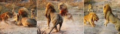 والتقط الصور المصور " جاستن جلانفيل " والتي أظهرت صوره أن الأسد كان يخوض عراكا مع أسد آخر لمدة ساعتين وبدأ يفقد قوته فتدخلت إناث الأسد لمساعدته في تلك المعركة