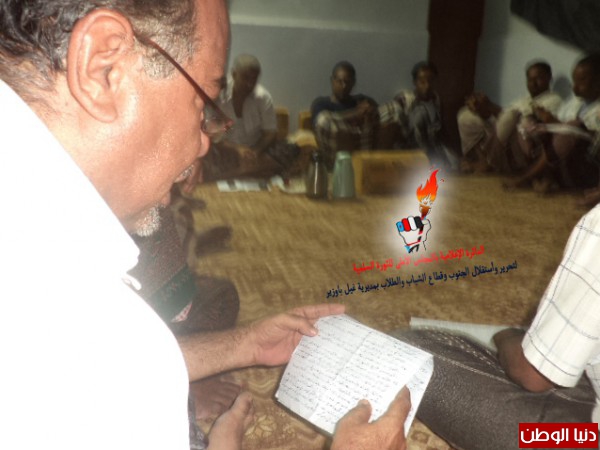 كما أكد الأستاذ:- حسن أحمد البحسني رئيس اللجنة المكلفة بالنزول لحارات وأحياء المدينة في كلمته على ضرورة العمل بتوصيات وتقرير اللجنة المكلفة والذي تم تقديمه إلى قيادة المجلس الأعلى للثورة السلمية لتحرير واستقلال الجنوب بمديرية