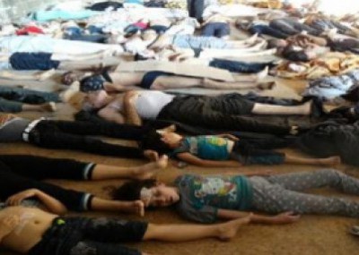 أظهر فيديو على موقع اليوتيوب الشهير القتلى بالاسلحة الكيماوية في سوريا وهم ينهضون بعد موتهم ويضحكون.