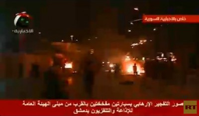 انفجار سيارتين مفخختين يقودهما انتحاريان وسط دمشق قرب الهيئة العامة للاذاعة والتلفزيون