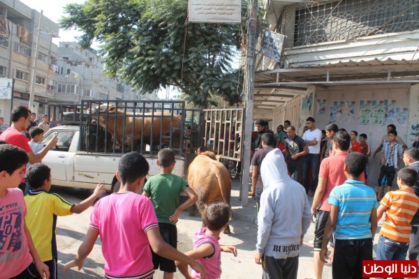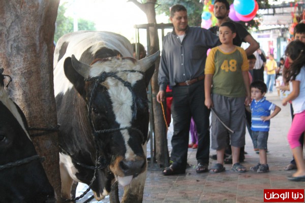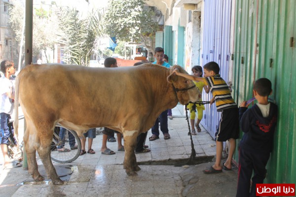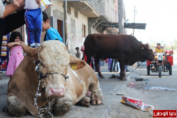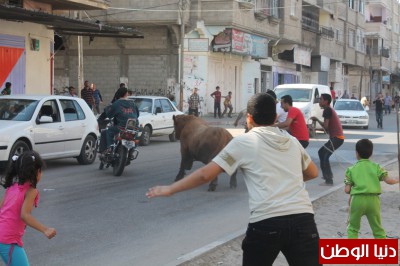 بالصور.. استعداد المواطنين لاستقبال الاضاحي في محافظة خانيونس , هروب "عجل" يثير فزع المواطنين