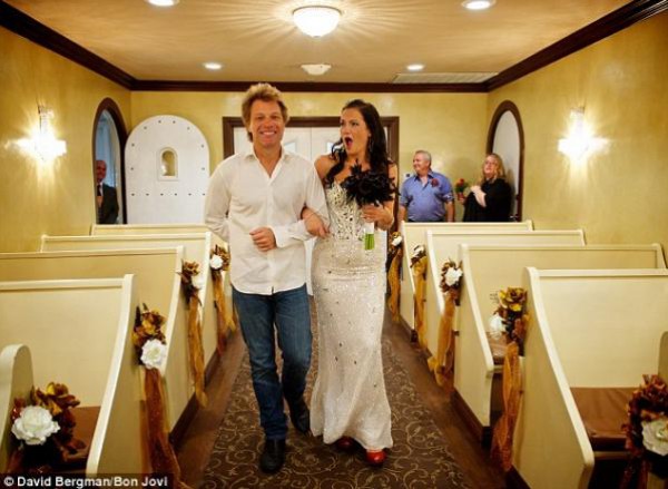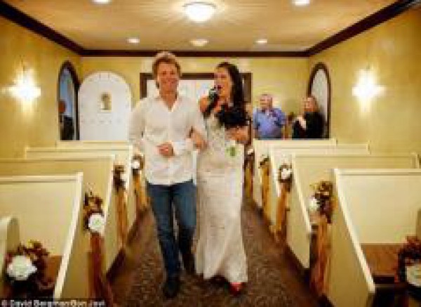 بالصور: النجم الأمريكي "بون جوفي" يحقق حلم عروس ويرافقها إلى المذبح في يوم زفافها