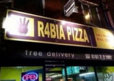 أقدم مستثمر سعودي على تغيير اسم محله لبيع "البيتزا" في انجلترا إلى اسم "رابعة، حيث تداول نشطاء على موقع التواصل الاجتماعي "فيس بوك" صورًا للمحل بمدينة مانشيستر بإنجلترا لرجل أعمال سعودى، فضل تسمية محله بهذا الاسم تخليدًا لذكرى "رابعة العدوية"على حد وصف موقع تابع للاخوان.
