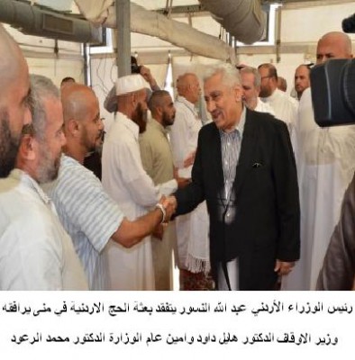 تفقد رئيس الوزراء الدكتور عبد الله النسور بعثة الحج الاردنية في منى يوم الثلاثاء بحضور وزير الاوقاف والشؤون والمقدسات الاسلامية الدكتور هايل داود وامين عام الوزارة الدكتور محمد الرعود .