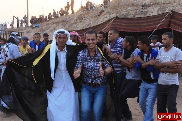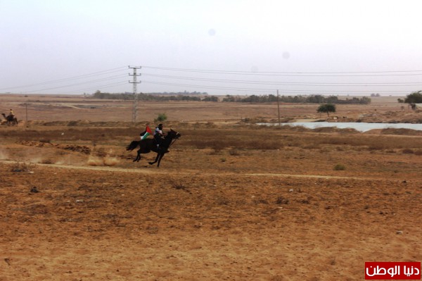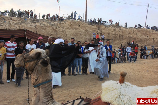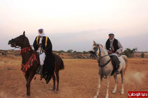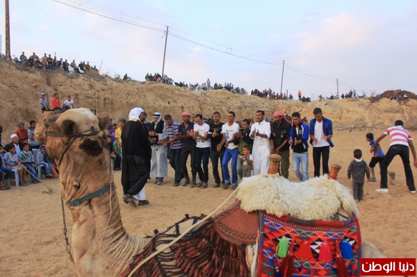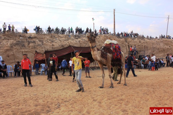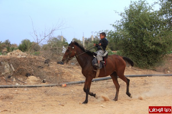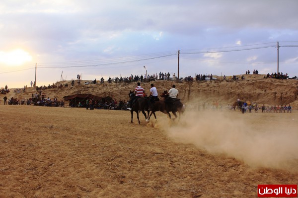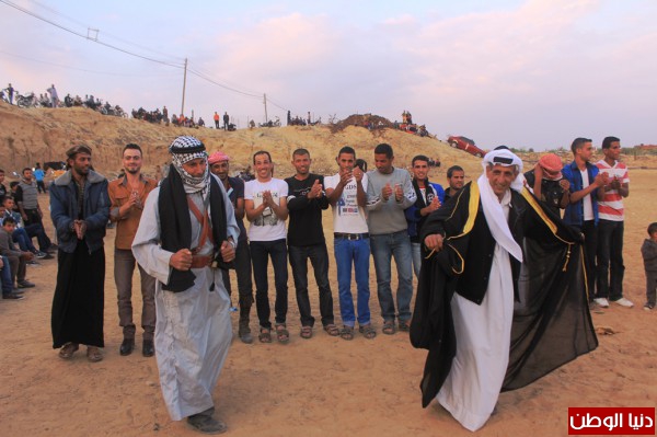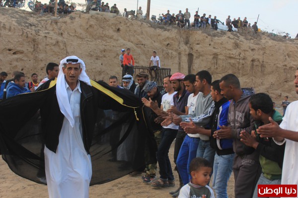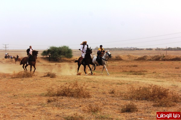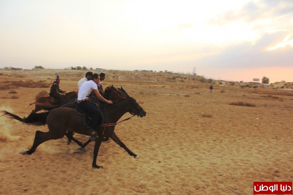 علي بعد 400 متر من بوابة كوسفيم العسكرية جنوب قطاع غزة شرق محافظة خانيونس إنطلق الزمر والطبل وسباق الخيول كإحتفالية أطلقها السكان البدو( عشيرة السميري ) فى المنطقة إبتهاجاً بعيد الأضحي المبارك بحضور لفيف من السكان وأهل المنطقة لليوم الثاني على التوالي .