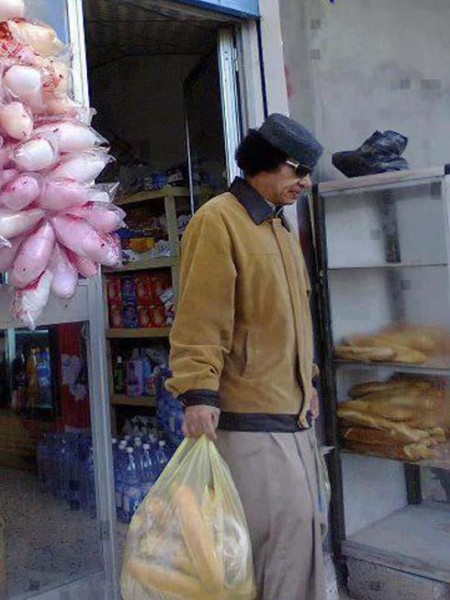 انتشرت على صفحات الفيس بوك صورة لشبيه الرئيس الليبي الراحل معمر القذافي في أحد الأسواق العربية