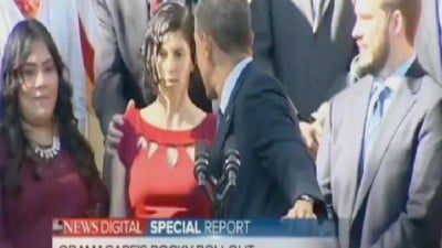 بالصور والفيديو : هذا ما يحدث عندما يتكلم كثيرا.. فتاة تقطع على أوباما خطابه وكادت تنهار