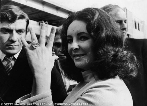 اليزابيت تايلور أهديت خاتماً ماسياً من 33 قيراط خلال خطوبتها من الممثل العالمي ريتشارد بورتون عام 1964، وقد عرض الخاتم في المزاد مقابل 305 آلاف دولار .